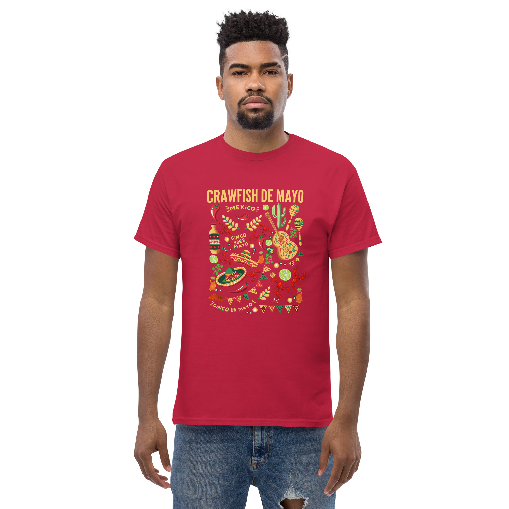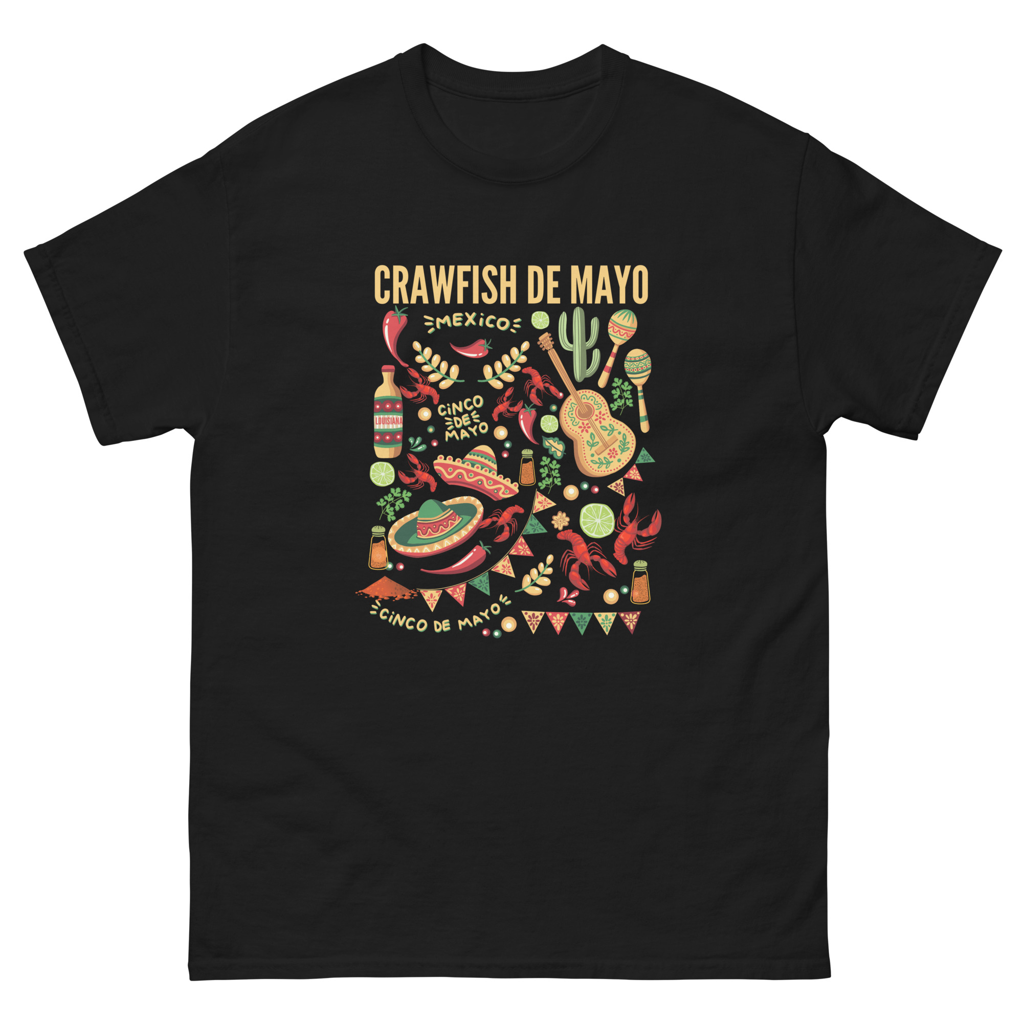 Show your love for Cinco de Mayo and crawfish with this trendy men’s tee! The 100% cottonclassic tee goes perfectly at your next crawfish boil!